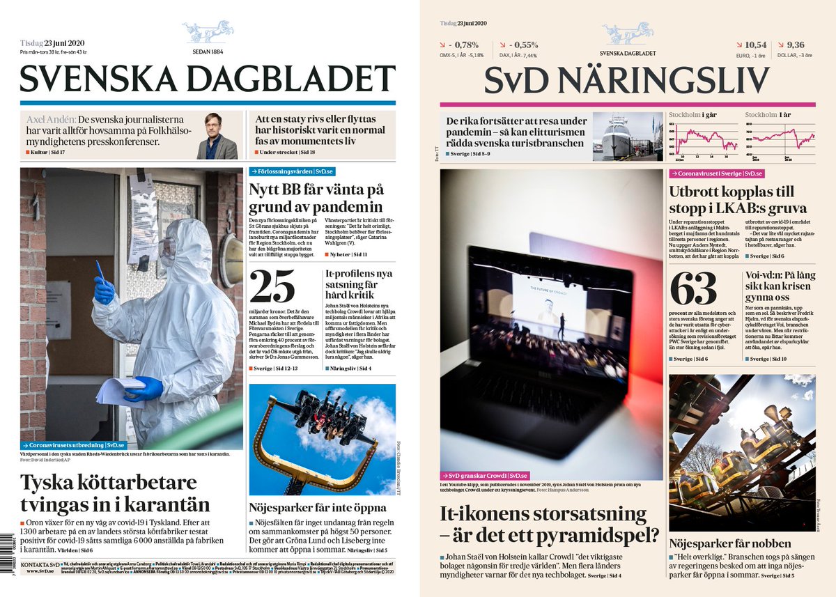 Dagens story, svd:s nya förstasida och ledarredaktionen.